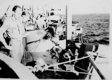 Dan Carney was a fire controlman on the stern port 40 MM. He served on Telfair from new construction through the end of WWII.