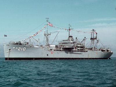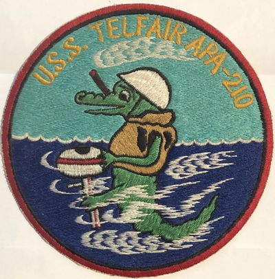 USS TELFAIR (APA-210) was laid down under a Maritime Commission contract (MCV hull 558) on 30 May 1944 at Richmond, Calif., by Permanente Metals Corp.; launched on 30 August 1944, sponsored by Mrs. J. L. Cauthorn; and commissioned at San Francisco on 31 October 1944, Comdr. Lyle O. Armel, USNR, in command. Following fitting out at Oakland, Calif., and shakedown and amphibious training off San Pedro, Calif., TELFAIR returned via San Diego to San Francisco to load troops and cargo for her first westward voyage.